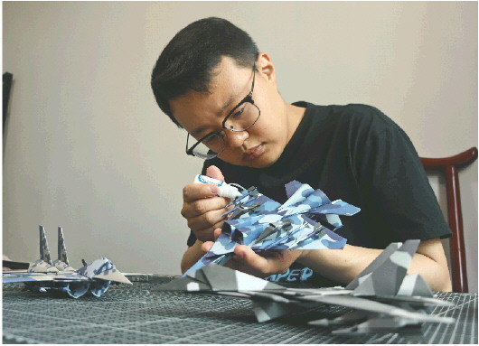 宋佩琦为广告拍摄制作飞机折纸。
