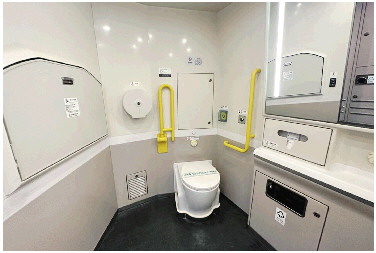 例如,复兴号智能动车组无障碍卫生间多配备坐便器,并设有婴儿护理台和旋转扶手,旅客可以在此为婴儿更换尿不湿(一定要使用固定绑带防止婴儿跌落)。对于旋转扶手,旅客只需轻轻旋转,即可将扶手调高或放下,为自己提供受力支持。