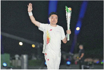 8月7日,火炬手丁俊晖在开幕式上传递火炬。 新华社发