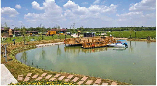 在乡村旅游方面,葛店村充分挖掘乡村的自然风光和人文资源,建成了济阳区首家乡村振兴产学研项目基地,利用水稻研学基地,开发了插秧、收割、碾米等体验课程。目前,葛店村精心打造了稻梦空间、小荷中医、匠杺社、济庆非遗手造等特色研学项目,配套发展京东特产超市,推出稻田小火车、水上游船、稻田咖啡、稻香灯塔等休闲娱乐项目,引入金晔山楂特色产业项目等,进一步丰富发展业态,增强造血功能,村民实现了在家门口就业创业。