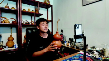 “2018年上大学期间,我开始在自媒体平台尝试发布关于家乡葫芦的宣传视频。大学三年一直坚持宣传,到2021年积累了12万粉丝。”郝学坤说。
