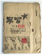 封面右上方一枚五星闪闪发光,下方三人手戴镣铐,似在奋力呐喊、抗争。封二为“编辑股”的“发刊词”,其中写道:“《学习》在我们队伍的行进中产生了。它的任务是阐扬革命理论,激发斗争情绪与报告抗战行动。”“《学习》在队伍中不该是点缀品,应该是营养素。所以,我们要求同志们给它有力的内容和新的形式。《学习》不是编辑股少数(人)的,本军全体同志都有给它写文章的义务。只要同志们能够实践《学习》的口号,根据《学习》的旨趣,那么,就可以保证《学习》周刊健全起来,发生力量!”