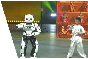二是表演赛,设置了单机舞蹈、群体舞蹈2个项目。通过艺术编排、音乐配合与动作创新,展示人形机器人全身实时协同控制和群体协同能力。