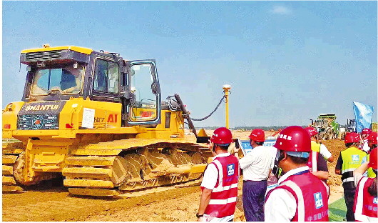 右图为山推AI智能推土机参与济南太平水库项目建设。 记者 孔茜 通讯员 祝存波 摄影报道