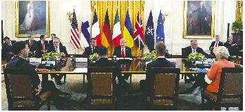特朗普、泽连斯基和多名欧洲领导人在白宫举行多方会晤。 新华/美联