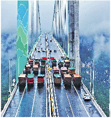 21日,随着18辆总载重630吨的卡车分批行驶上桥,停放至预先划定的停靠点,在建世界第一高桥——贵州花江峡谷大桥正式启动荷载试验。