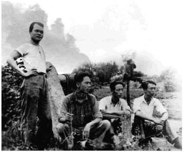 1940年5月,臧克家(右二)与碧野(左一)、姚雪垠(左二)、田涛(右一)在鄂西北前线。