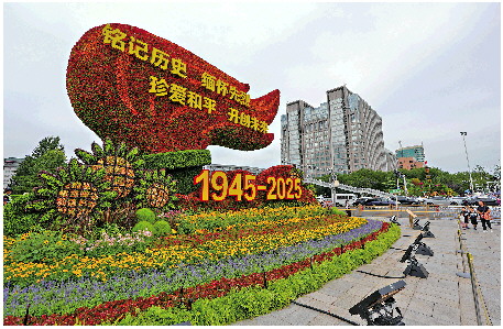 据介绍,抗战胜利80周年纪念活动期间,在长安街沿线以“铭记历史、缅怀先烈、珍爱和平、开创未来”为主题,从建国门至复兴门布置10组立体花坛,生动展现80年来,伟大的中国人民前仆后继、不屈不挠、顽强奋斗,为实现强国建设、民族复兴伟业而不懈努力的伟大精神。花坛花卉布置工作现已完工,10组花坛已在长安街沿线亮相。 新华社发