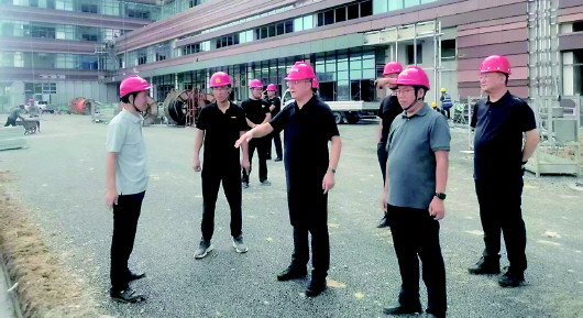 王海涛一行深入综合楼、活动中心、宿舍、室外配套、园林绿化、暖通安装等重要单体及关键施工环节,认真查看工程进度、材料供应、劳动力配置、外观质量等具体工作落实情况,对部分作业面施工力量不足、各工种衔接不够紧密、建筑垃圾清运不及时等问题进行现场协调解决。
