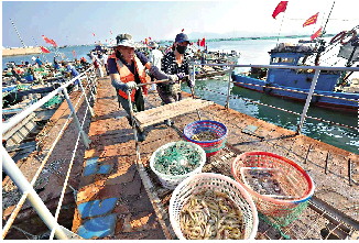 “今天出海时间短,收获还可以,和自己预期差不多。”一位渔民笑着说,他这一船有二百多斤渔获,以梭子蟹为主,还意外捞到八只野生大对虾,被一位市民一眼相中,当场以100元全部“抢”走。“等了四个月了,又闻到了熟悉的味道。”市民们脸上难掩幸福的喜悦。