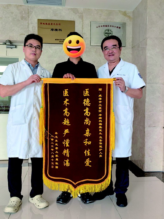 这面锦旗不仅是一份荣誉,更是一份沉甸甸的责任。它印证了威海市立医院疼痛科在运用微创技术解决各类复杂疼痛问题上的技术优势与丰富经验。未来,科室将继续秉承“精准诊断、微创治疗、人文关怀”的理念,不断探索和应用前沿技术,致力于为每一位疼痛患者提供最优质、最有效的诊疗方案,让他们告别痛苦,重拾无忧生活。