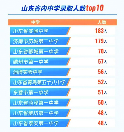 山东大学今年在省内共录取本科新生3650人。从生源数量来看,山东省实验中学继续霸榜,成为山东大学省内最大生源中学,今年共有183人考入山东大学。其次是历城二中,共179人。排在第三位的是聊城一中,共70人。