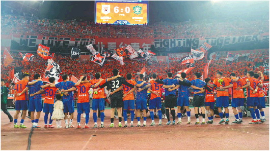 四万名球迷用最响亮的声音为俱乐部加油,在球员与教练谢场时,他们久久不愿离去,高喊着王大雷、瓦科的名字。