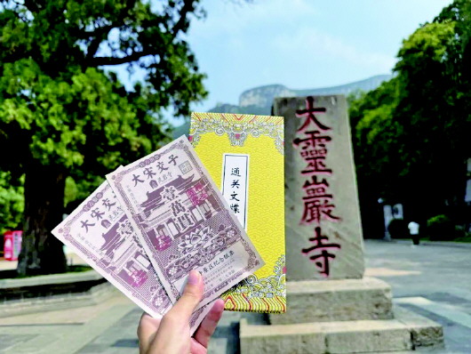 暑期,山东文旅·灵岩寺景区推出了灵岩“交子”玩法。游客通过与景区内的NPC互动等方式可以收获这一灵岩寺“通用货币”,并可用“交子”兑换景区内的饮料、文创、素面等好物。