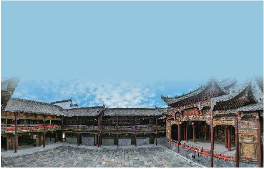 书院是双天井结构的徽派建筑,徽派建筑典型的“白墙青瓦马头墙,飞檐翘角中天井”展示出独特的人文底蕴,体现出宁静而深远的意境,承载着中国传统建筑“天人合一”的哲学思想。