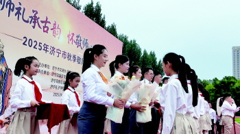 济宁孔子学校副校长丛胜莲表示,“敬师礼”活动,是一场探寻文化本源的“寻根之旅”,让学子们在文化的根基中汲取力量,让尊重老师的传统深深印刻在思想深处,懂得这不仅是一种礼仪准则,更是对知识、对智慧的由衷敬仰;是一次立足当下、践行美德的“致敬之举”,学生们的一次次躬身、一个个手势间,让老师感受到尊重与崇敬,令尊师之礼成为校园里最温馨的画面;是一场涵养品格、迈向未来的“育德之路”。当同学们行“天揖礼”时,齐诵《论语》经典章句时,尊师重教、见贤思齐的智慧便悄然传递,并化为心底的一股力量,为人生旅途照亮方向,为社会的发展进步提供源源不断的精神力量。