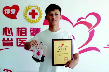 捐献者是俞龙斌,一名来自聊城市阳谷县公安局大布派出所的“02后”民警,入警刚满两年。他成为全国第20947例、山东省第1777例造血干细胞捐献者。