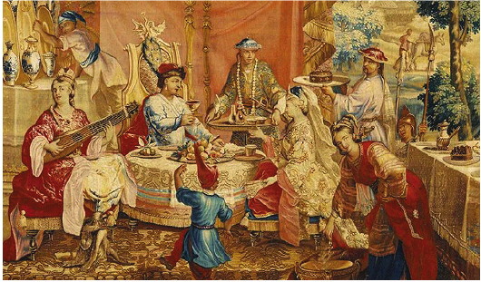 1685年,沈福宗从法国来到英国,国王詹姆士二世同样邀请沈福宗出席宫廷宴会,英国宫廷画师克内勒为他画像。沈福宗在欧洲亲身演示,直接传递了来自中国的进餐方式。可以说,此时的欧洲上层社会,已经可以通过中国人沈福宗,直接体验中国的餐桌礼仪与文化,而不仅仅停留在使用中国餐具等器物层面。