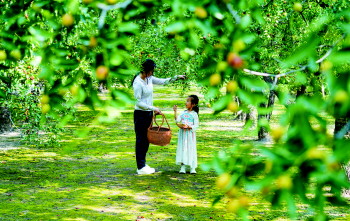 游客在乐陵市朱集镇千年枣林游览区采摘金丝小枣
