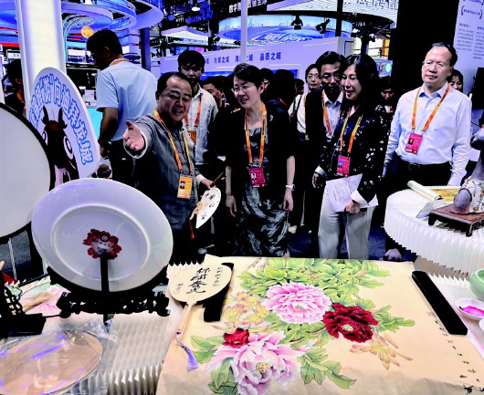 在全球数字化浪潮奔涌向前的当下,服务贸易的数字化转型已成为不可逆转的时代潮流。中国作为服务贸易大国,正积极拥抱数智变革,以创新驱动服务贸易高质量发展,在全球服务贸易格局中抢占先机、赢得主动。在此背景下,山东以“数链山海·智服全球”的独特姿态亮相服贸会,精心规划的数字创新、出海升级、文化转化三大板块熠熠生辉。创新构建“一山一水一人”三维驱动体系,塑造具有国际辨识度的“山东服贸”品牌,为全球服务贸易的多元化发展贡献着山东智慧。巨野工笔牡丹画受邀亮相本次盛会,既彰显了别具一格的艺术风貌,更是传统文化与新时代深度融合的生动见证,承载着中华优秀传统文化在数智浪潮中传承与创新的使命担当。