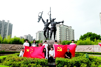 实践团首站走进安东卫保卫战遗址公园,开展爱国主义教育研学。通过瞻仰铸铜雕像与浮雕景墙,队员们深切缅怀革命先烈的英勇事迹,在沉浸式学习中强化理想信念、厚植家国情怀。队长林辰宇带领曲卓然、刘惠琰、杨旭涵、葛桐瑜、董宸宇等队员庄严宣誓:将以青春之我奉献青春之中国,为实现民族复兴贡献智慧与力量!