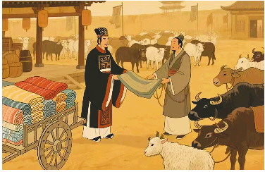 乌氏倮在此过程中发现了商机。他看到了以发达农业为基础的中原地区所盛产的丝绸、谷物等物产,也看到了西北内陆草原地带繁盛的牛羊牲畜,更看到了二者间产品交易、互通有无的巨大需求和利润空间。