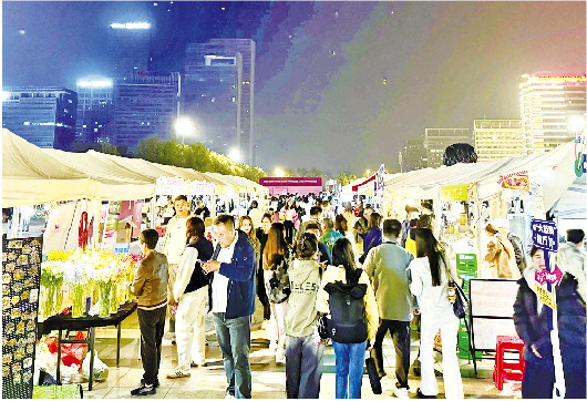 场内,绚丽的舞美与经典金曲交织,精彩绝伦的视听盛宴持续升温;场外,歌迷的热情同样丝毫不减。奥体中心北广场的“乐荷市集”化身欢乐聚集地,火热氛围迅速蔓延至整个奥体中心商圈,餐饮、娱乐等商业氛围愈加红火。