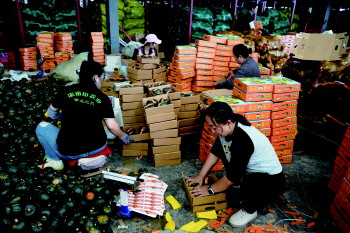 “为了减少损耗,我们做南瓜必须得快进快出。”刘新成给记者算了一笔账:一车7万斤的南瓜,放一天就流失一两千斤水分,仓储费还要1100元。为减少损耗,从产地采摘到运抵仓库仅需3至4天,到货后最快当天就能完成分拣发货,“现在货足,客户基本不用提前订货,现来现发”。