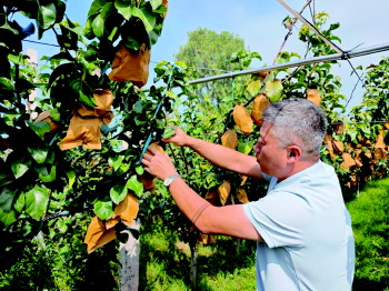 “果子现在熟得刚好,甜度也很高,除了个头儿小了点儿,没别的毛病。”9月18日,在小郇村的梨园里,沉甸甸的果实挂满枝头,种植户郇加春正在梨园里检查果实的成熟程度。“技术指导员让我们一根树枝上留七八个果子,但到了疏果的时候我们都舍不得摘,一根树枝上留了十来个,结的梨就小,人家企业就不愿意来收了。”郇加春说。此外,今年秋月梨市场价格走低,与之外形相近的皇尊蜜梨也受到影响,加之生态种植成本高,企业给出的回购价难以覆盖成本,最终只能“另寻销路”。