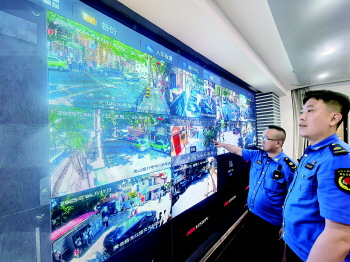 江苏路街道综合执法中队工作人员通过智慧系统实时监控重点区域。
