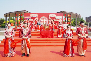 “我们的爱情故事始于平度,今天在这里许下相伴一生的誓言,更希望将‘小家’的幸福融入‘大家’的发展中。”参加首届“平度人·幸福家”家文化节集体婚礼的新人代表周歌与丁梦瑶夫妇说。作为此次家文化节活动的亮点,8月29日上午,“海誓山盟 浪漫青岛”2025年新时代集体婚礼在平度市2020公园长广湖广场浪漫举行。10对新人身着传统婚服,在广大市民的见证下举行集体婚礼。不同于传统婚俗的繁复,此次集体婚礼以攥红绸、跨火盆、跨马鞍、签婚书、注铜鼎等简约而有意义的形式进行,特别融入新人宣读《新时代文明婚俗倡议书》环节,大力弘扬简约适度、现代文明的婚俗新风。