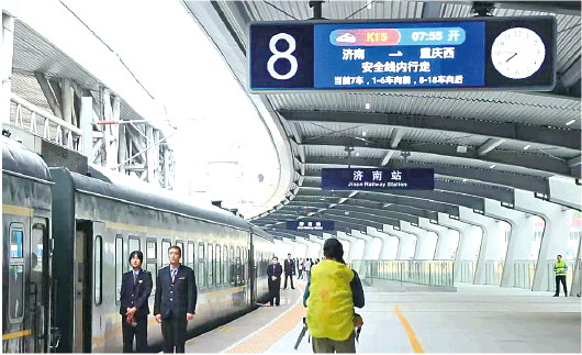 9月26日上午7时55分,济南火车站北站房启用后,首趟列车在11股道开出。