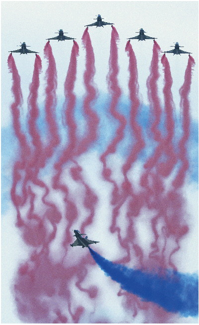 飞机的轰鸣声、相机的快门声、观众的欢呼声融在一起,空地不断地沸腾、沸腾,再沸腾。记者把所有的激动都聚集在按动快门的右手食指上,希望能把那份精彩、那份感动和那一个个肉眼不能企及的瞬间呈现出来,把热爱空军、热爱国防的种子撒播得更广。