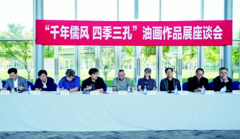 展览开幕式上还举办了“千年儒风 四季三孔”油画作品展座谈会。中国艺术研究院文学艺术院专职画家、中国国家画院油画所研究员王桂勇肯定了作品的艺术价值与文化意义。他认为,创作团队始终坚持“以油画为体,以儒学为魂”的理念,既发挥油画在光影、空间、质感表现上的优势,又融入中国艺术“写意传神”的美学精神,实现了艺术语言与文化内涵的深度融合,为“油画中国化”提供了生动案例。