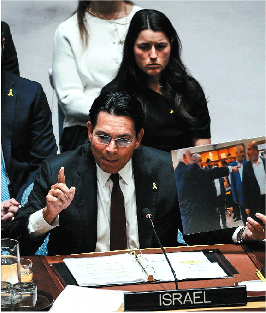 达农与巴勒斯坦代表的交锋就更多了,他第一次担任以色列常驻联合国代表期间,多次与巴勒斯坦常驻联合国观察员里亚德·曼苏尔“交手”。2015年10月,达农首次代表以色列在安理会发表讲话时,曼苏尔曾打断他的讲话。去年8月,第二次出使联合国的达农在首秀讲话中“炮轰”曼苏尔,称其是“穿着西装的恐怖分子”,要求其谴责哈马斯,“如果你不谴责他们,你就是他们中的一员”。