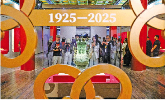图为9月29日,观众在“百年守护——从紫禁城到故宫博物院”展览上观赏青铜莲鹤方壶。 新华社发