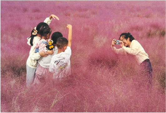 临沂沂河岸边的粉黛乱子草花儿竞相绽放。 高军 摄