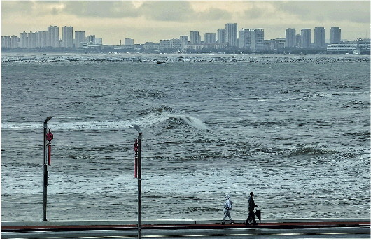 游人在荣成沿海公路“踏浪”前行。 戚勇 摄