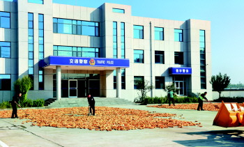10月14日,正值秋收时节,接连半个多月的阴雨天后,聊城迎来了久违的晴天。在冠县公安局交管大队乡镇二中队大院内,村民抢收的玉米在大院里铺成了一片地毯,金黄色的玉米穗与交警大院办公楼上的国徽交相辉映,在阳光下熠熠生辉。