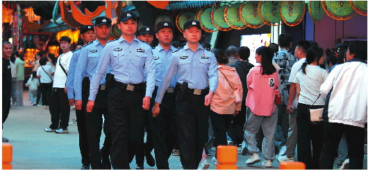 为筑牢景区安全防线,分局科学调配警力,将警力最大限度投放到景区出入口、核心景点、狭窄路段、人员聚集区等重点部位,实行“网格化巡逻+定点值守”相结合的防控模式,显著提升景区见警率、管事率和应急处置能力。定期组织开展治安集中清查行动,重点排查整治涉黄、涉赌、涉诈等违法犯罪隐患,有效挤压违法犯罪空间。十一假期提前开展拉网式安全排查,对景区周边餐饮、住宿等行业场所进行全面检查,及时整改安全隐患;同时,在景区设立便民服务点,及时处置群众诉求,现场解决游客迷路、物品遗失等求助,以热情周到的服务赢得游客广泛好评。