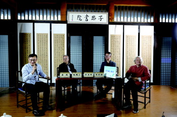 10月10日,“《中庸》通讲”开讲仪式在邹城市子思书院举行。仪式包括拜谒子思、鸣钟启动、专家授课、专家与谈4个环节。全体人员首先向述圣子思行告由礼,随后鲍鹏山、袁汝旭、宋立林、武宁共同鸣钟启动“《中庸》通讲”系列活动。
