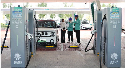 国网济南供电公司工作人员在济南起步区示范站检查充电设备运行情况。