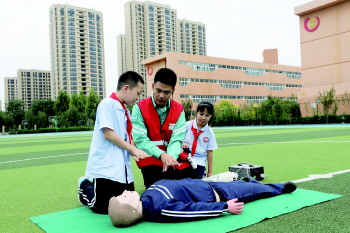 9月18日,武城供电公司到小学开展“鲁电科学课 百校科普行”活动,为学生们讲授安全用电、心肺复苏等防护知识。 (郑智慧)