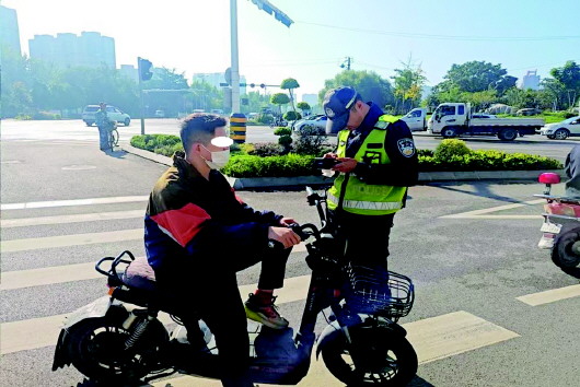 在电动自行车停放集中区域,通过增设“规范区”,引导有序停放。在流量大的路段路口采取设置“头盔佩戴提示牌”“禁止逆行警示桩”“自行车+电动自行车”组合标识等方式,强化对骑行人员的提醒引导。对事故多发的右转路口,通过设置右转危险警示区、推行中重型车辆右转停车等措施,消除风险隐患。