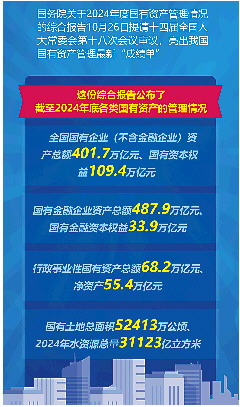 国务院关于2024年度国有资产管理情况的综合报告26日提请十四届全国人大常委会第十八次会议审议,亮出我国国有资产管理最新“成绩单”。