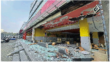 记者在现场看到,天龙大厦东西两侧外围已经搭建起部分铁皮围挡。西北角原永和豆浆、吉祥馄饨火车站直营店等3家商铺呈现出明显拆除迹象,门窗被卸下,店内已经清空。