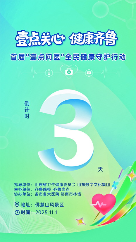 11月1日(本周六)上午9:00—12:00,“壹点问医”全民健康守护系列行动将在济南佛慧山北门广场正式启动,省市优质医疗资源将组团入驻,200余名专家将为市民带来家门口的权威健康诊疗服务。