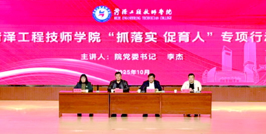 近日,菏泽工程技师学院召开学生干部培训及表彰大会,落实市教育局25年职业院校“抓落实 促育人”专项行动要求。学院党委书记李杰、党委副书记杨锦升,学工处处长李龙、思政部主任杨冬梅,各系部书记及学院学生会、班级主要学生干部参会,大会由思政部李娜老师主持。