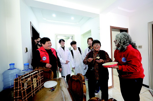 志愿者与社区工作人员组成的“微孝小分队”分赴孤寡独居老人家中送米面等生活物资及热腾腾的饺子。
