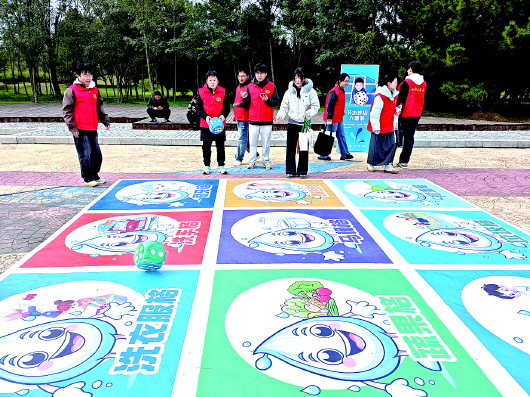 巡河活动末端设置趣味游戏,志愿者与市民参与其中进行互动。